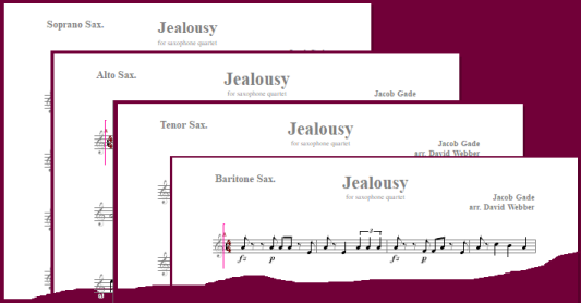 In 1997 I created an arrangement of "Jealousy", a tango by Jacob Gade, for an SATB Saxophone Quartet. The files, saved by Mozart 2, were: